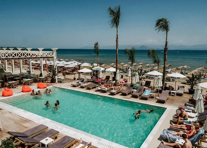 **Trabukos Beach Complex** invites you to experience the vibrant charm of Kavos, where the Ionian Sea meets stunning natural beauty. Perfectly positioned steps from the beach, the complex features a captivating garden adorned with palm trees, a seasonal outdoor pool, and a lively bar, promising a refreshing retreat for sun-seekers and nightlife enthusiasts alike.